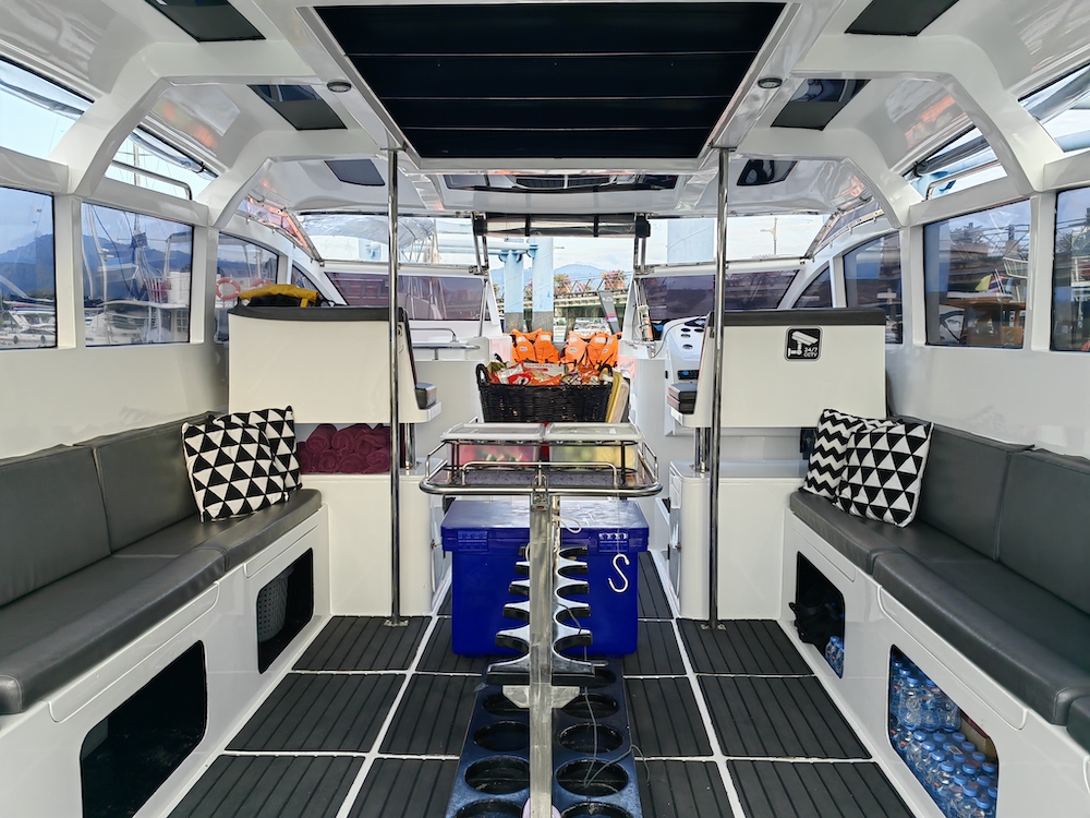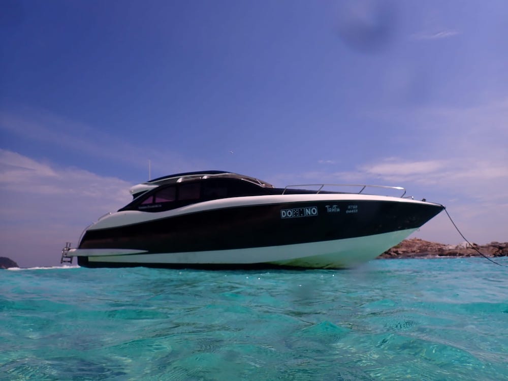 Racha Yai Island is located about 25 km south of Phuket’s Chalong Bay. It has a circumference of 12 km. It takes approximately 45 minutes by speedboat, allowing for a longer stay on the island, which is highly recommended.