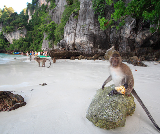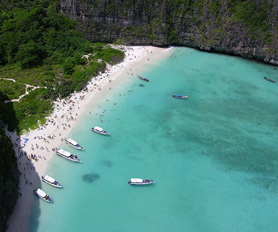 The Phi Phi Islands consist of six islands, located 42 km south of Krabi on the Malay Peninsula and 45 km south of Phuket. For travelers visiting Phuket, it is the most popular destination for sightseeing and snorkeling, and is the number one choice among our optional tours. The dynamic and sometimes mysterious limestone landscapes formed by erosion attract many visitors. Among the Phi Phi Islands, only Phi Phi Don has a town and a port, making it the central hub of the archipelago. Maya Bay, made famous by the movie “The Beach,” is located on Phi Phi Ley Island, next to Phi Phi Don. Snorkeling and diving are also popular attractions in the area.